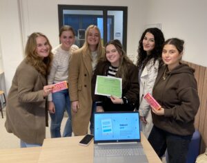 Maran Pijffers, Marlies Weerkamp, Lynn Dam, Maud Belderink, Jesaja Gorgis en Merve Ekinci (v.l.n.r.) bedachten het idee voor een app die op een gebruiksvriendelijke manier feedback van patiënten over hun ziekenhuisverblijf verzamelt.